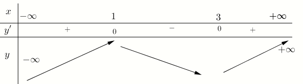 \(y’ = 0 \Leftrightarrow \left[ \begin{array}{l}x = 3\\x = 1\end{array} \right.\) (thỏa mãn)