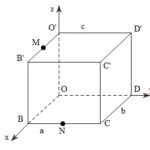 Đề bài: Cho hình hộp chữ nhật $OBCD.O'B'C'D'$ có $OB=a, OD=b, OO'=c$. $M$ và $N$ lần lượt là trung điểm các cạnh $OB'$ và $BC$a) viết phương trình mặt phẳng đi qua $M$ và song song với hai đường thẳng $O'N$ và $B'D$b) Tính thể tích hình khối chóp $O'OND$ Lời giải a) Viết phương trình mặt phẳng $(\alpha )$ qua $M$ và song … [Đọc thêm...] vềĐề bài: Cho hình hộp chữ nhật $OBCD.O'B'C'D'$ có $OB=a, OD=b, OO'=c$. $M$ và $N$ lần lượt là trung điểm các cạnh $OB'$ và $BC$a) viết phương trình mặt phẳng đi qua $M$ và song song với hai đường thẳng $O'N$ và $B'D$b) Tính thể tích hình khối chóp $O'OND$